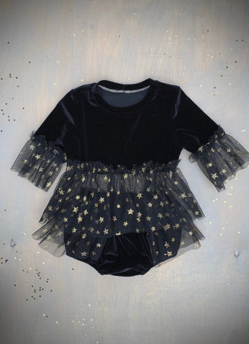 GB PARTY COLLECTION : One of a Kind Celestial Set + Peplum Top & Bloomers in Onyx 12-18M ready to ship