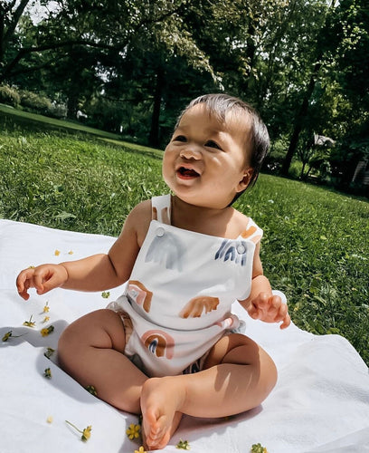 Baby + Toddler Organic Cotton Bubble Romper Playsuit in Earthy Rainbows