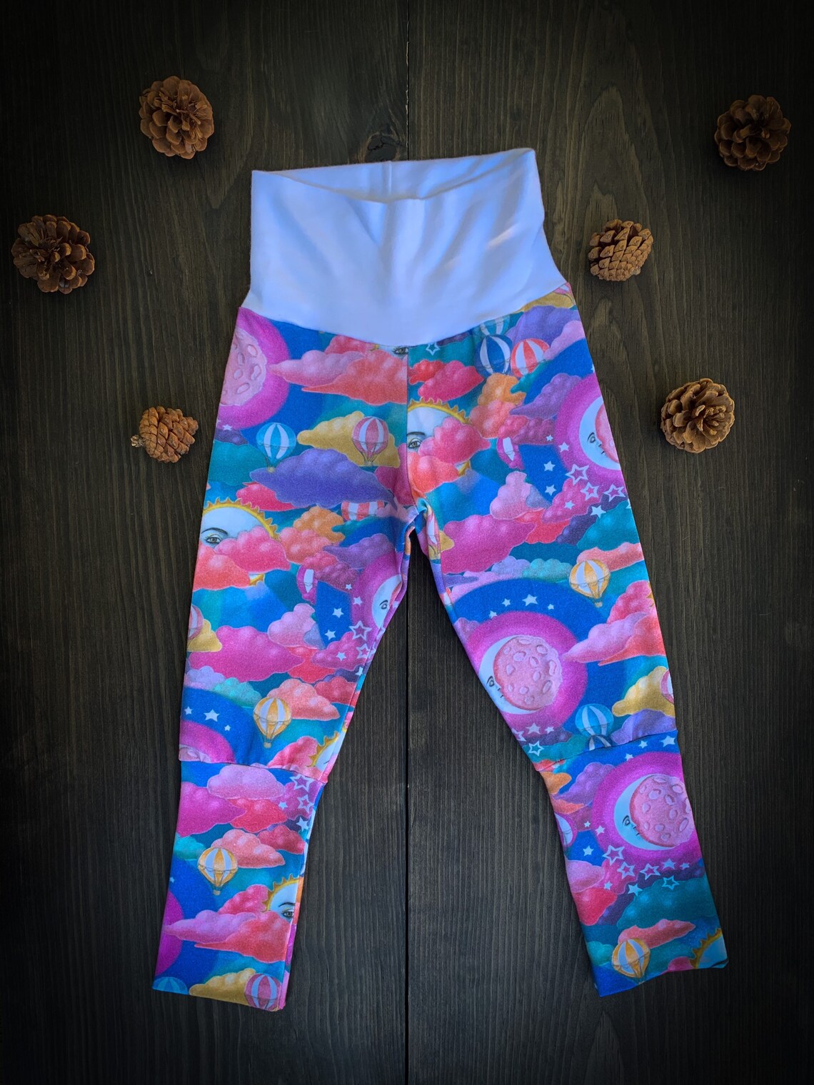 Grow With Me Slim Pant in Celestial Dreams These pants are meant to grow with your child. Made out of a Stretch Cotton & French Terry that is super soft and luxurious feeling against your little one’s skin, getting softer with each wash. Cuffs and waistband can be folded over and extended as the child grows, these pants are meant to fit through seasons of exploring and play.