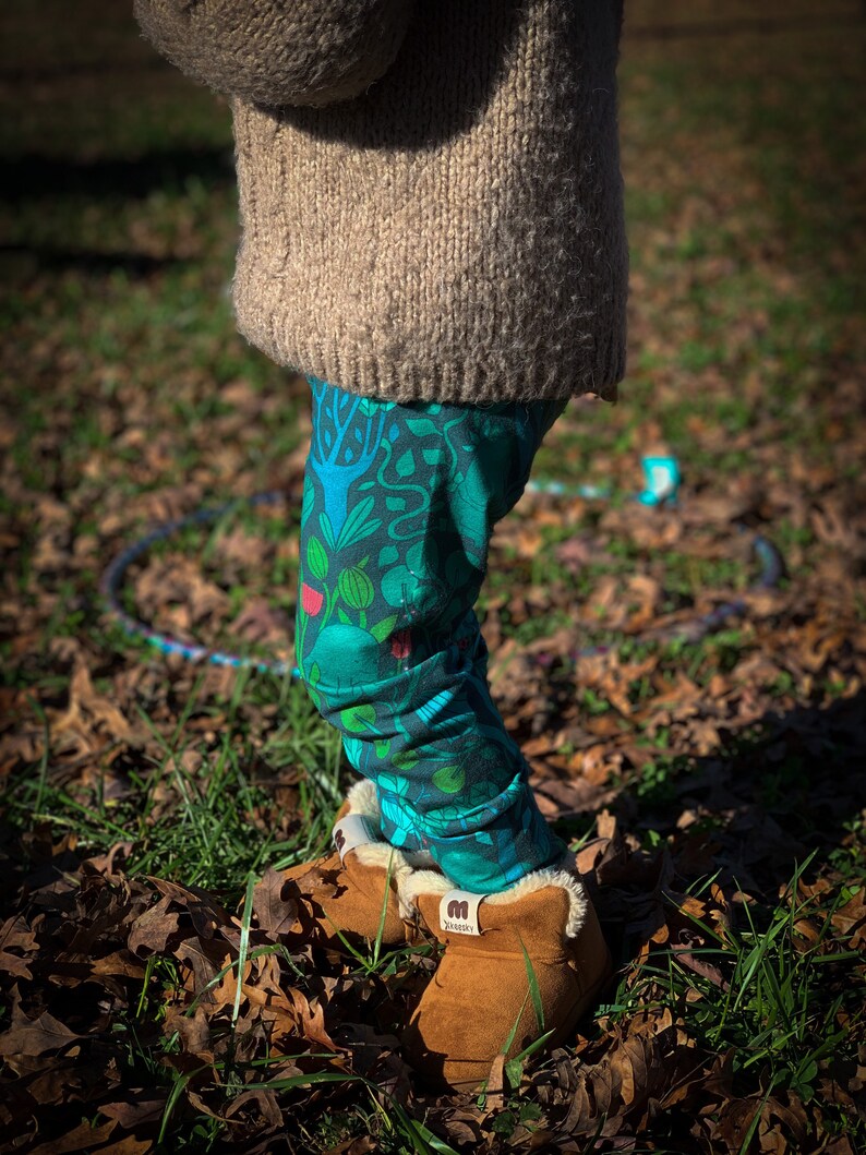 Grow With Me Slim Pant in Forest Keepers These pants are meant to grow with your child. Made out of a Stretch Cotton & Bamboo French Terry that is super soft and luxurious feeling against your little one’s skin, getting softer with each wash. Cuffs and waistband can be folded over and extended as the child grows, these pants are meant to fit through seasons of exploring and play.