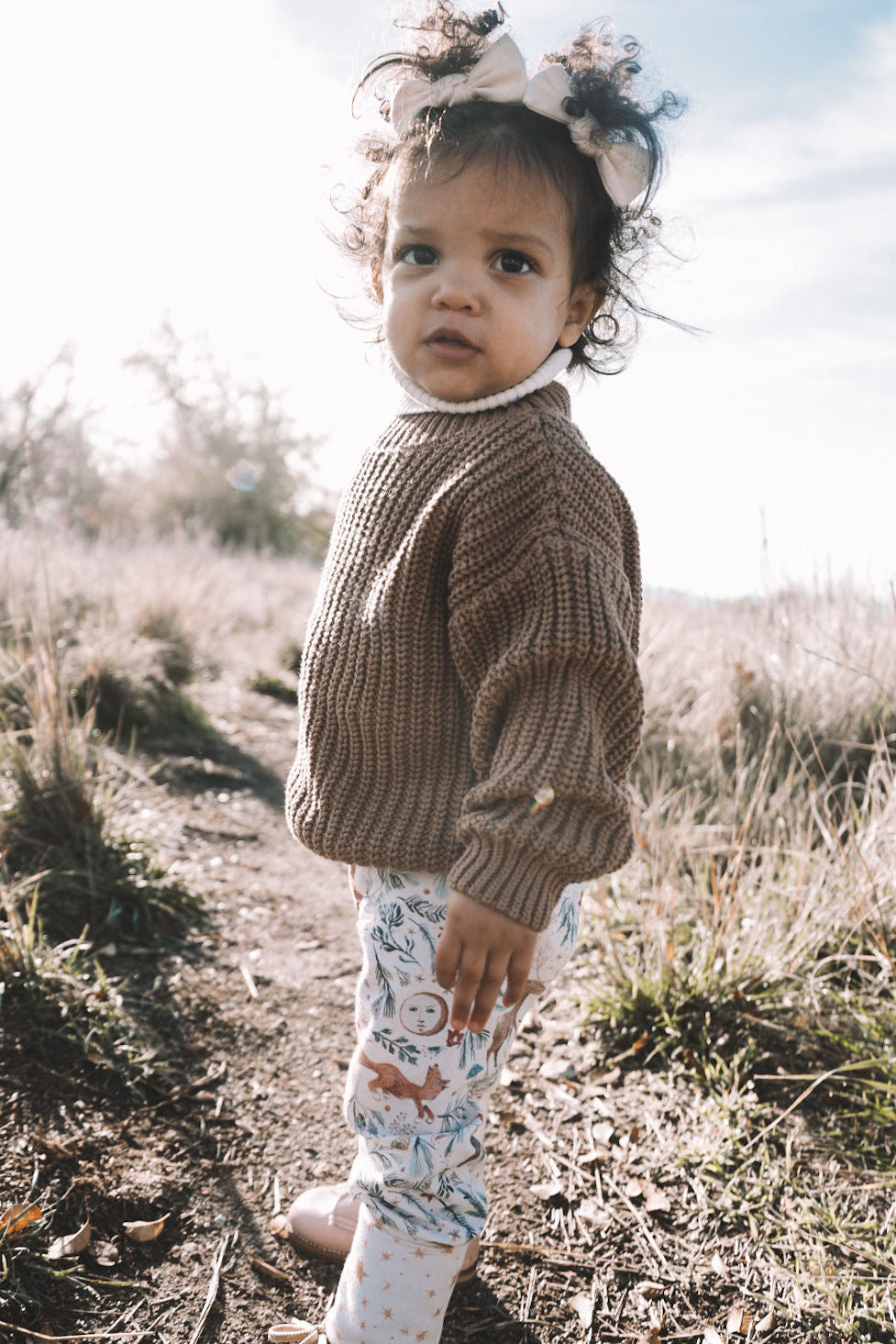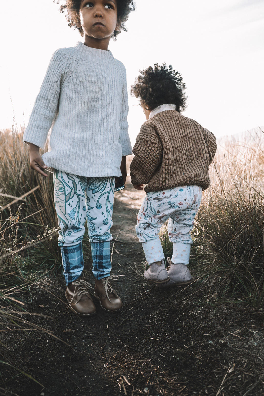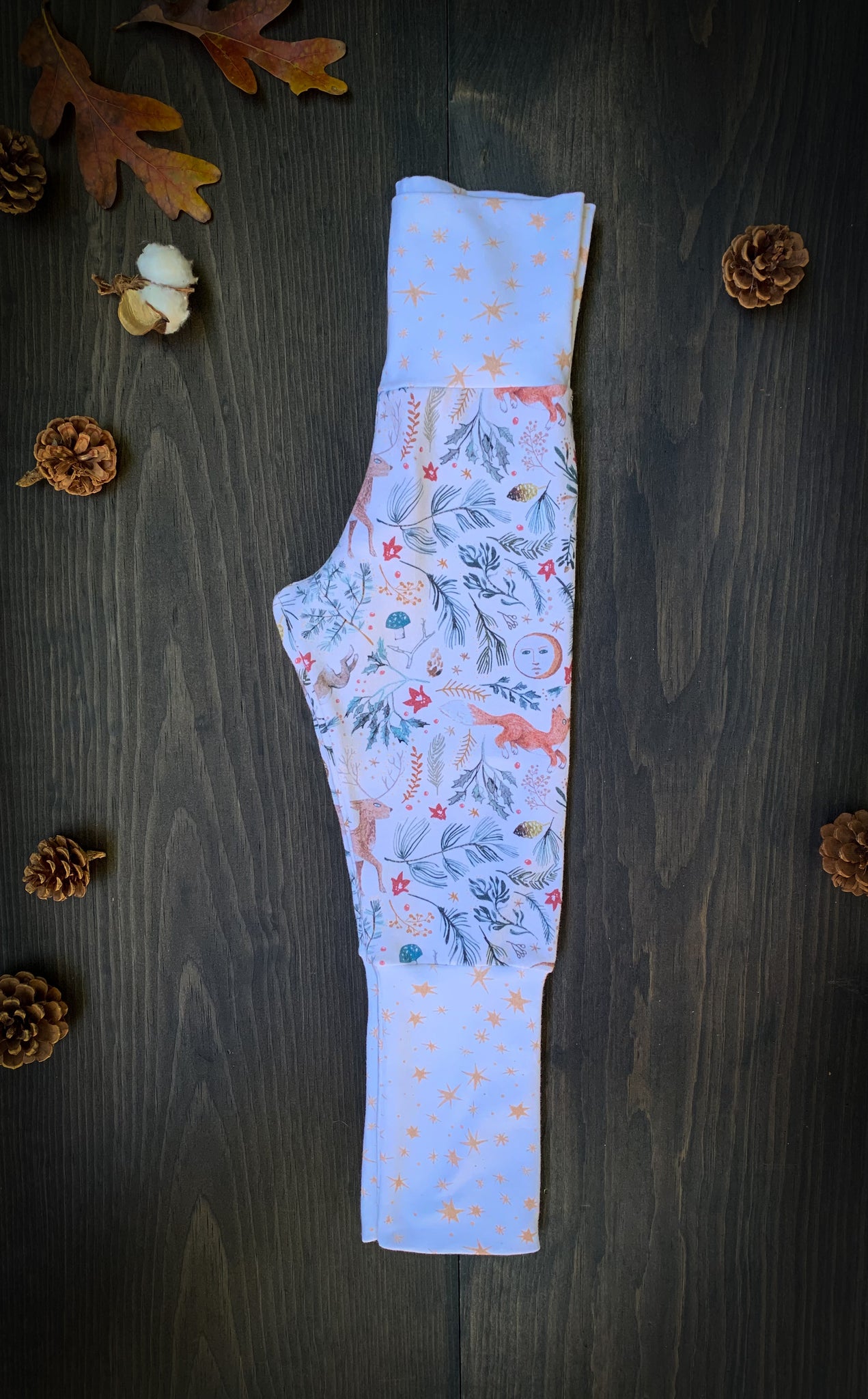 These pants are meant to grow with your child. Made out of a Cotton Spandex Jersey that is super soft and luxurious feeling against your little one’s skin, getting softer with each wash. Cuffs and waistband can be folded over and extended as the child grows, these pants are meant to fit through seasons of exploring and play.