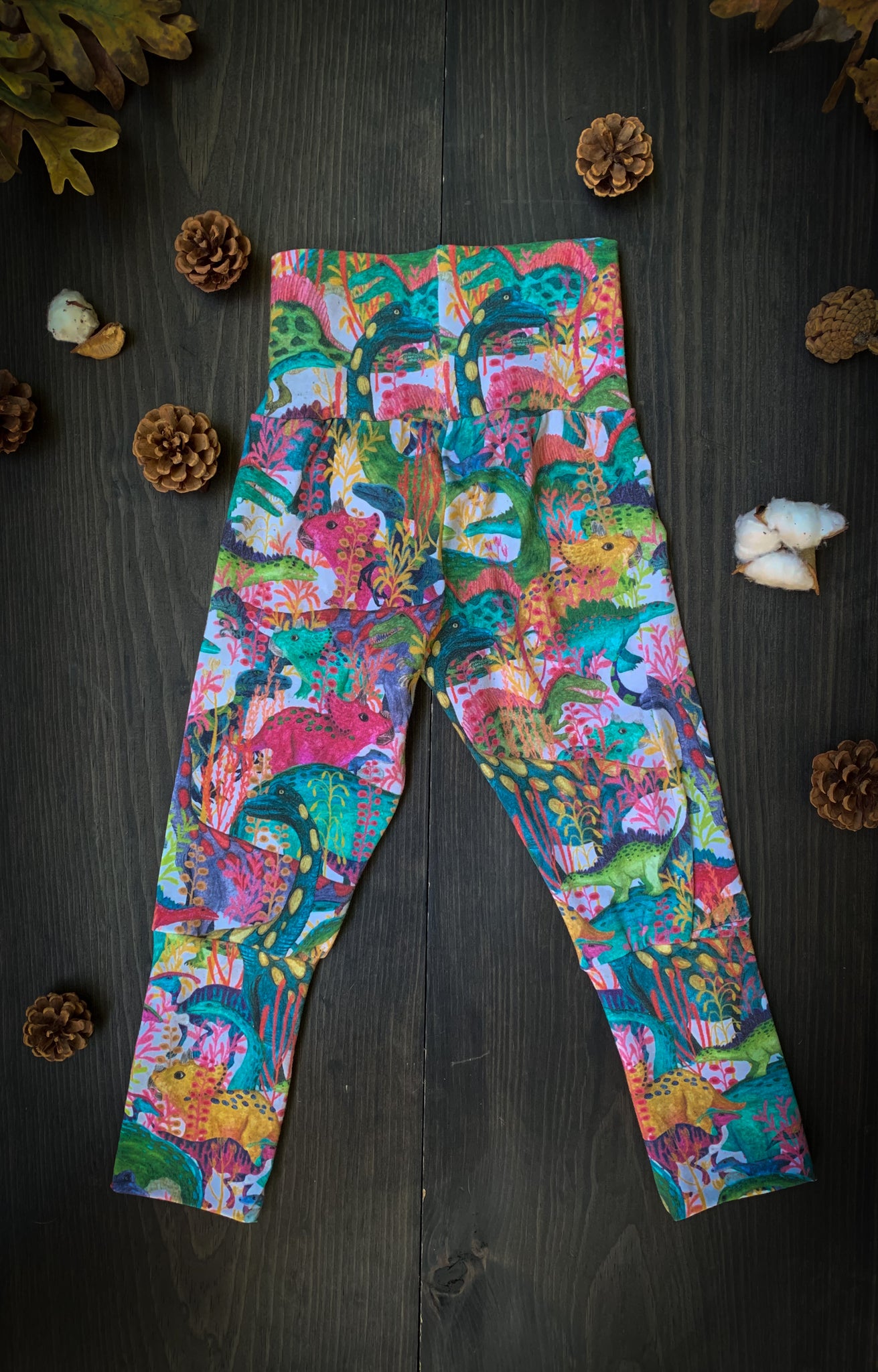 These pants are meant to grow with your child. Made out of a Spandex Cotton Jersey that is super soft and luxurious feeling against your little one’s skin, getting softer with each wash. Cuffs and waistband can be folded over and extended as the child grows, these pants are meant to fit through seasons of exploring and play.