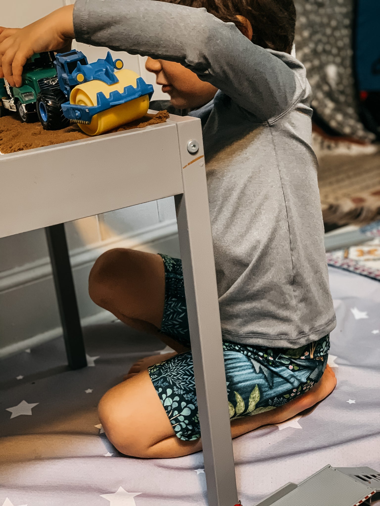 The Cove Water Shorts will be a staple in your little one’s wardrobe during the Summer months. Made out of the silkiest, medium weight, sports Lycra (swim material) perfect for keeping your little one cool during the Summer heat and protected from UV rays. Fast drying, these will be a favorite for swimming, water sports and play. Waistband can be unfolded as the child grows. Length will hit just at/above the knee and get shorter as the child grows.