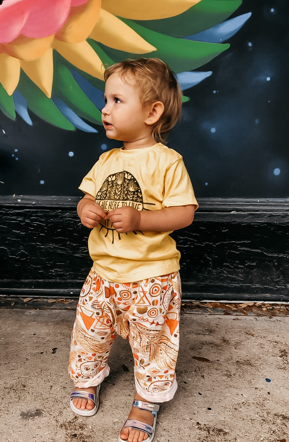 FRONTIER HAREM PANT in Boho Suns + Organic Cotton Double Gauze Baby & Toddler Summer Pant, Kids Yoga Pant