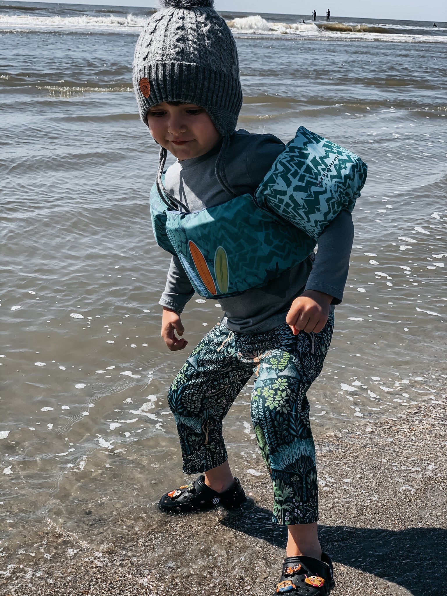 The River Water Pant will be a staple in your little one’s wardrobe during the Summer months. Made out of the silkiest, medium weight, sports Lycra (swim material) perfect for keeping your little one cool during the Summer heat and protected from UV rays. Fast drying, these will be a favorite for swimming, water sports and play. Waistband can be unfolded as the child grows. Length will hit close to the ankle and get shorter as the child grows.